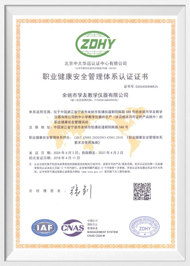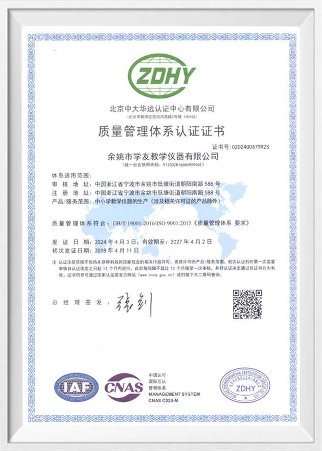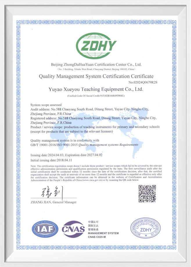 Yuyao Xueyou Teaching Instrument Co., Ltd., established in 2008, is a comprehensive enterprise specializing in the research, development, production, sales, and service of teaching instruments. The company is located in Yuyao City, Ningbo, Zhejiang Province, benefiting from an excellent geographical location and convenient transportation, which provides strong support for the company's business development.